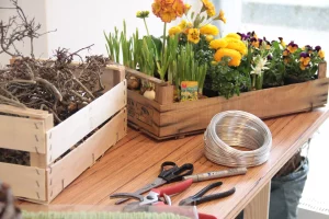 Strukturgebende Zweige und bemooste Äste mischen sich mit frischen Frühlingsblüten , samtigen Kätzchenweiden und glänzenden Blättern. Eine kreative Landschaft aus fröhlichen Naturmaterialien bringt Stimmung in Ihr Haus! Genau das Richtige für jetzt.
